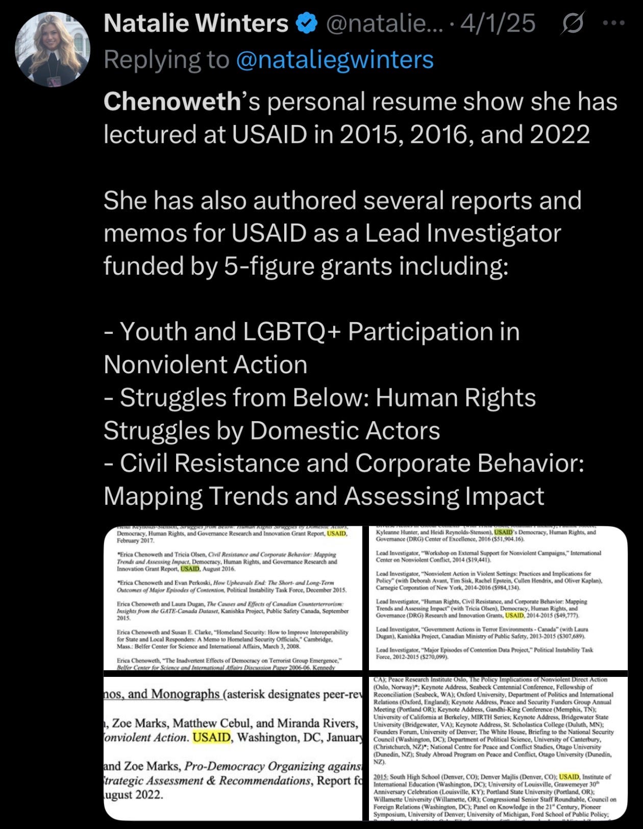 Chenoweth’s résumé also reflects years of collaboration with USAID–funded democracy initiatives abroad—programs that have historically fused activism, political pressure campaigns, and U.S. strategic objectives. The Ash Center workshop effectively imports that global protest infrastructure back into the United States, now enhanced with AI.