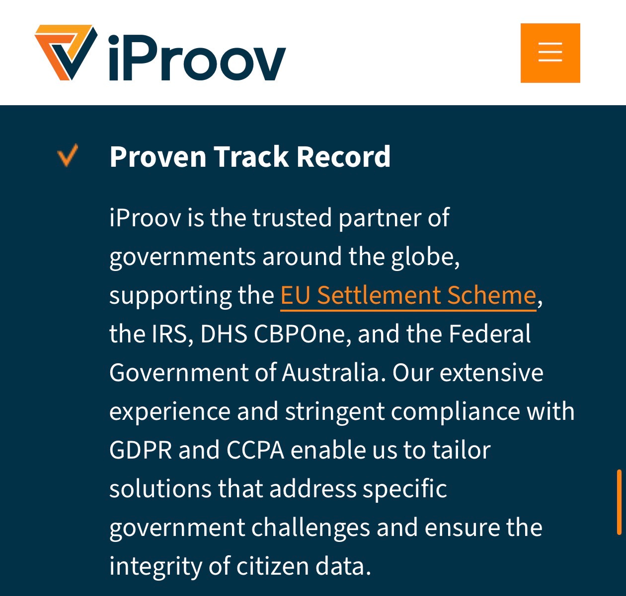 “iProov is the trusted partner of governments around the globe, supporting the EU Settlement Scheme, the IRS, DHS CBPOne.”