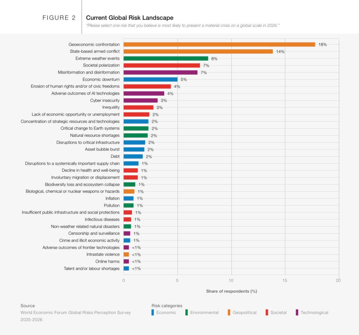 When respondents were asked which risk is most likely to trigger a material global crisis in 2026, the top answers were: