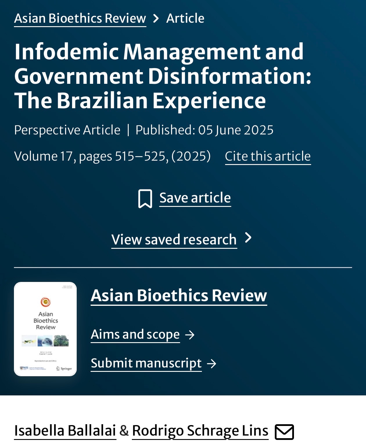 “(1) implementing epidemiological surveillance through social listening; (2) establishing a transparent, efficient, and agile communication strategy from public health authorities; and (3) enforcing stringent regulations and accountability measures for online disinformation.”