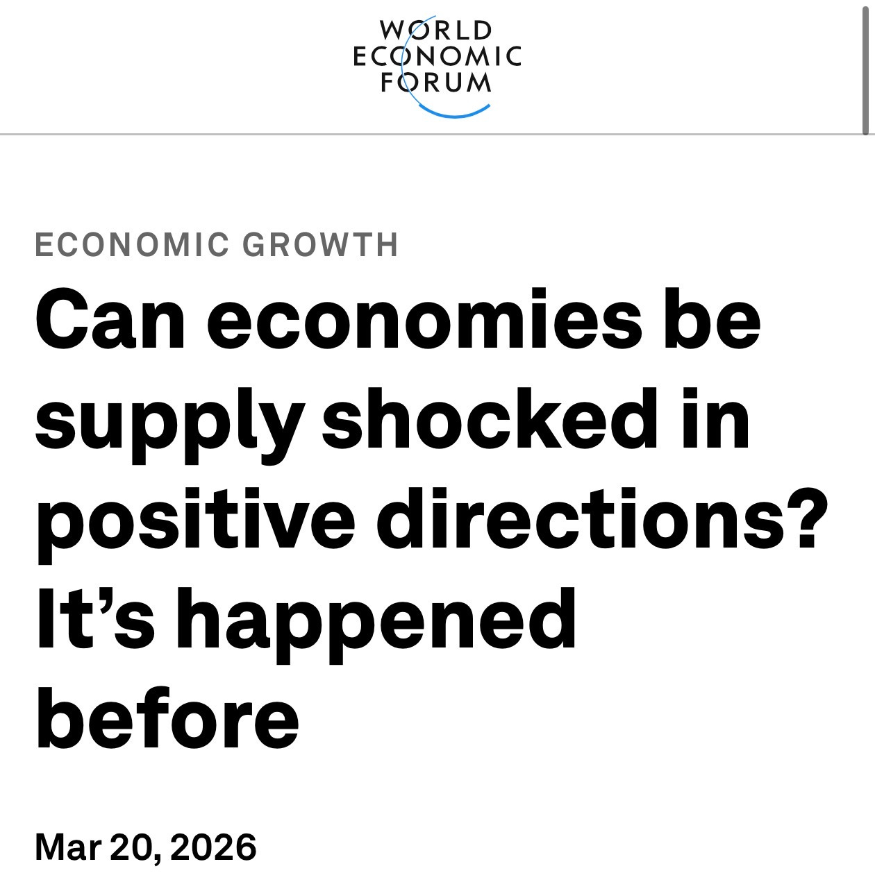 But the real tell comes from a second WEF article, published just days earlier, titled “Can economies be supply shocked in positive directions? It’s happened before.”